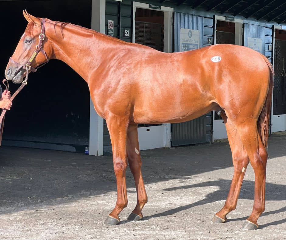 All Dressed Up (Super Saver) was purchased by horseOlogy in foal to MGISW Omaha Beach, who’s off to an auspicious start himself at stud, both on the track and in the auction ring. He’s tied at the top of the freshman sire list by black-type and graded stakes horses, and has been the dominant sales sire among his crop in each sales cycle thus far. The foal All Dressed Up is carrying was conceived on a $30K fee, and Omaha Beach has already been bumped up to $40K for next season.